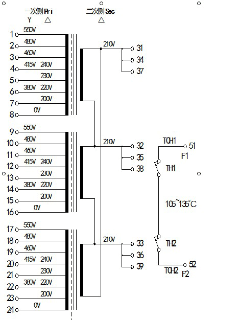 AC380/415/460/480/550V Y接法 AC200/220/230/240VΔ接法+10%;-15%50/60HZ±2Hz電壓按用戶要求