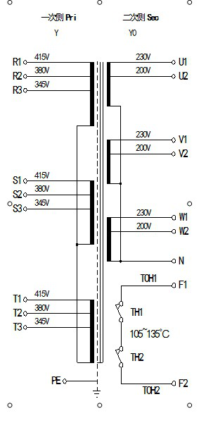 GSG系列三相變壓器技術(shù)參數(shù)示例